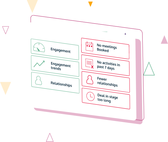 Never allow a valuable account to slip through the cracks. Risk indicators show whether an account is trending positively or negatively, guiding teams to take action before it becomes an issue.